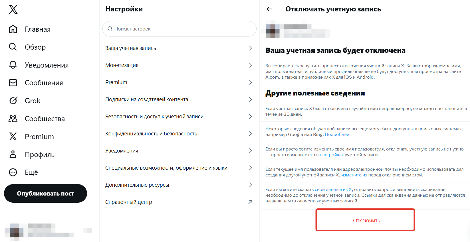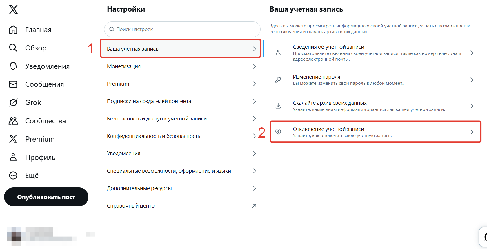 Если вы решили, что больше не хотите пользоваться Твиттером (X), можно удалить аккаунт через настройки: